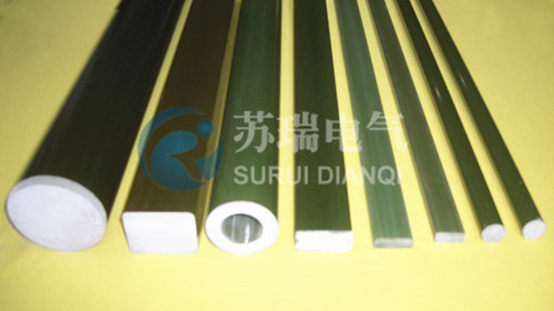 圓形絕緣柱由無堿玻璃纖維合成纖維紗.氈和織物作成增強材料,浸無溶劑樹脂在專業模具上以“引拔成型”工藝連續烘焙,固壓制成具有截面形狀的制品。如圓桿,方棒,槽鍥,工字梁,槽形件等?以及各種復雜形狀制品。具有纖維方向極高的機械強度和良好的介電性能以及任意長度特點。